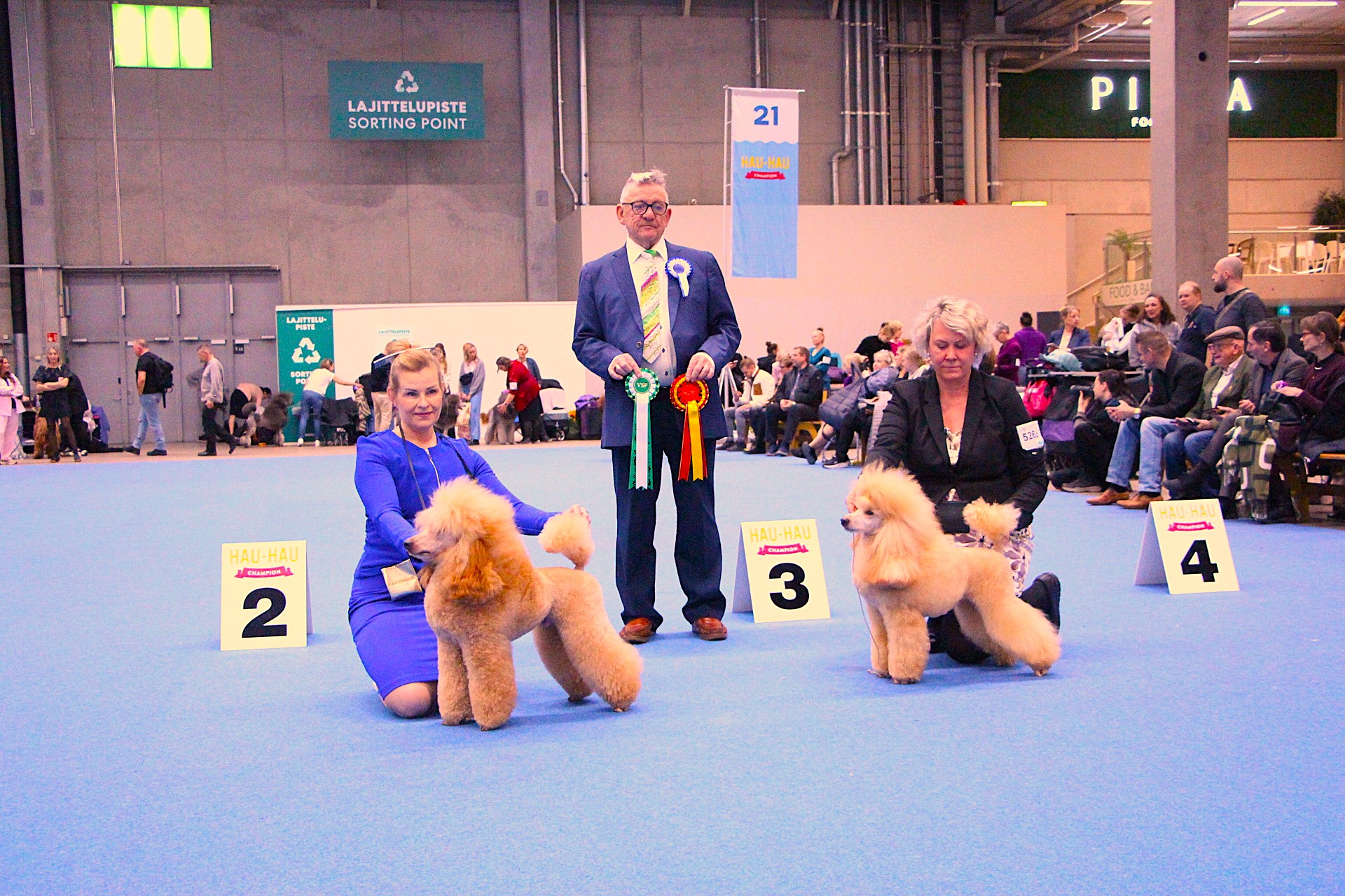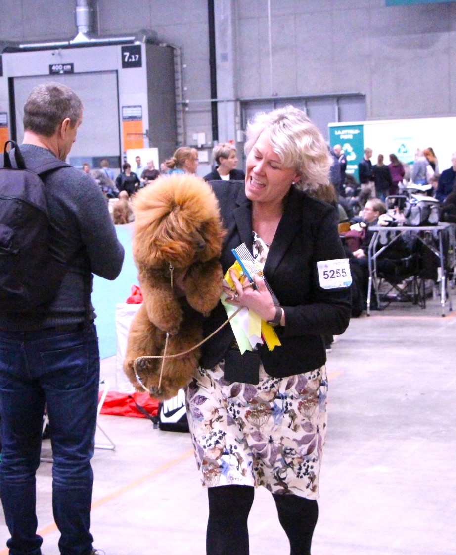 Ohhoh mikä päivä Lahdessa! Tosi iso määrä eli 27 ilmoitettua aprikoosi/harmaa/punainen villakoiraa, hienoja, todella tasokkaita, kauniita koiria. Ja mitä tekikään Kerttu. Oli ROP, saaden CACIB:n. Kertun menestys tuntuu aina hyvältä kun Kerttu on oma kasvattini ja jonka itse olen trimmannut sekä esittänyt kehässä. Kerttu nauttii kehässä esiintymisestä todella paljon.