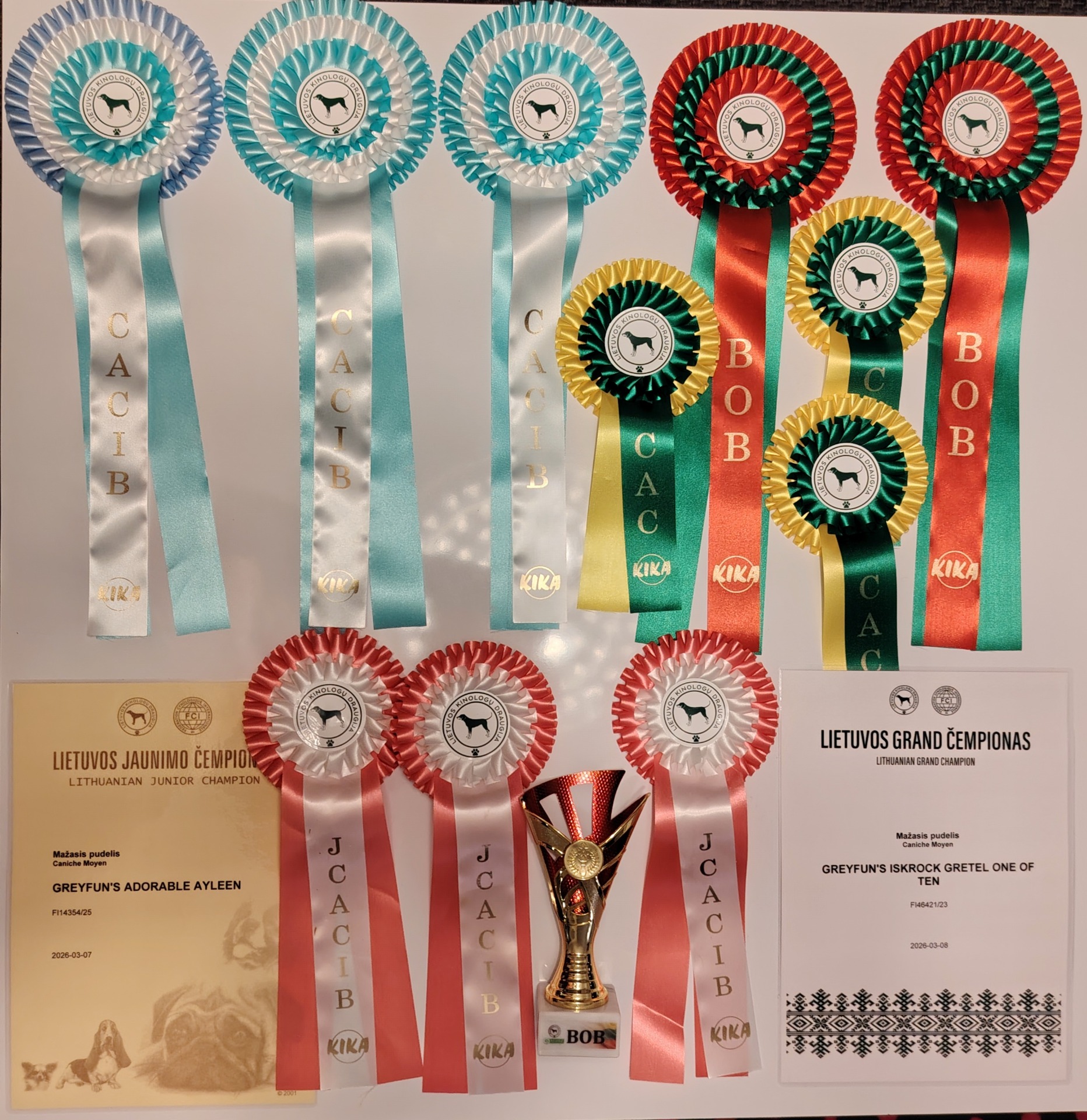 Vuoden näyttelyt startattiin pitkällä matkustamisella Liettuan Kaunakseen. Kaunaksessa oli tarkoitus osallistua kolmen päivän näyttelyihin mutta hyvän menestyksen myötä tuo typistettiin tarkoituksella kahteen päivään. Lolalle lähdettiin hakemaan Liettuan juniorisertejä. Perjantaina Lola oli ROP-juniori saaden JSERTin ja JCACIBin. Lauantaina sama tulos lisättýnä upealla ROP-tuloksella. Tämän myötä Lolasta tulikin Liettuan Juniorimuotovalio. Lolan seuraneitinä reissussa mukana 4kk ikäinen Kerttu, Greyfun's Iskrock Gretel One Of ten joka oli myös kehässä ollen molempina päivinä ROP-Baby :).