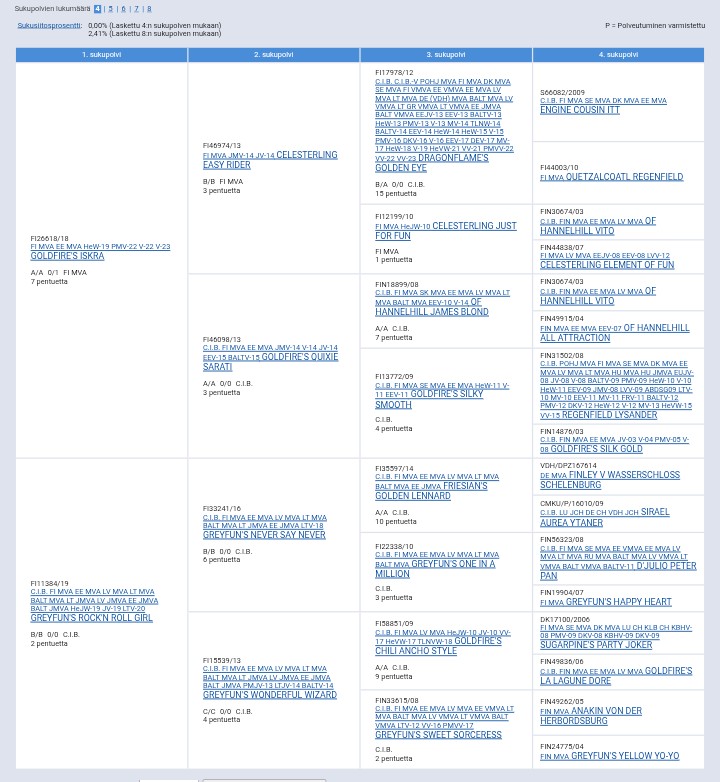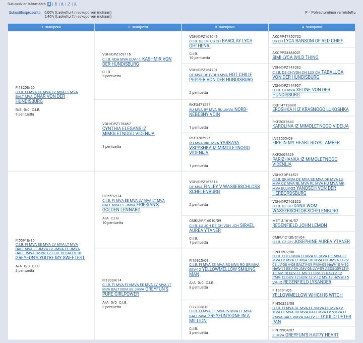 Dam: C.I.B FI CH, LV CH, LT CH, EE CH, BALT CH, LVW-12 Greyfun's Sweet Sorceress "Helmi"